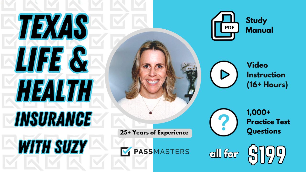 Suzy Rhoades, the owner and head instructor of PassMasters has created the best all-in-one online Texas life and health insurance exam prep course you can get. She has been teaching students just like you to pass their Insurance Exams for over 25 years.